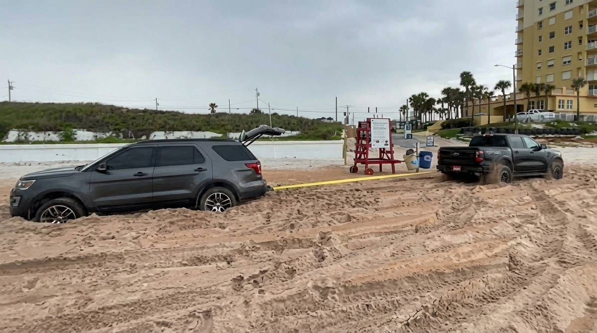 Florida je sice proslulá svými plážemi a kdysi i automobilovými závody přímo na pobřeží, ale písek zde může být zrádný. Přesvědčil se o tom nedávno řidič Fordu Explorer, který se na pláži ve Volusia County dostal do pořádných problémů. Jeho terénní vůz se zabořil hluboko do měkkého písku, přední část byla zcela pohřbena a kola neměla žádnou trakci.