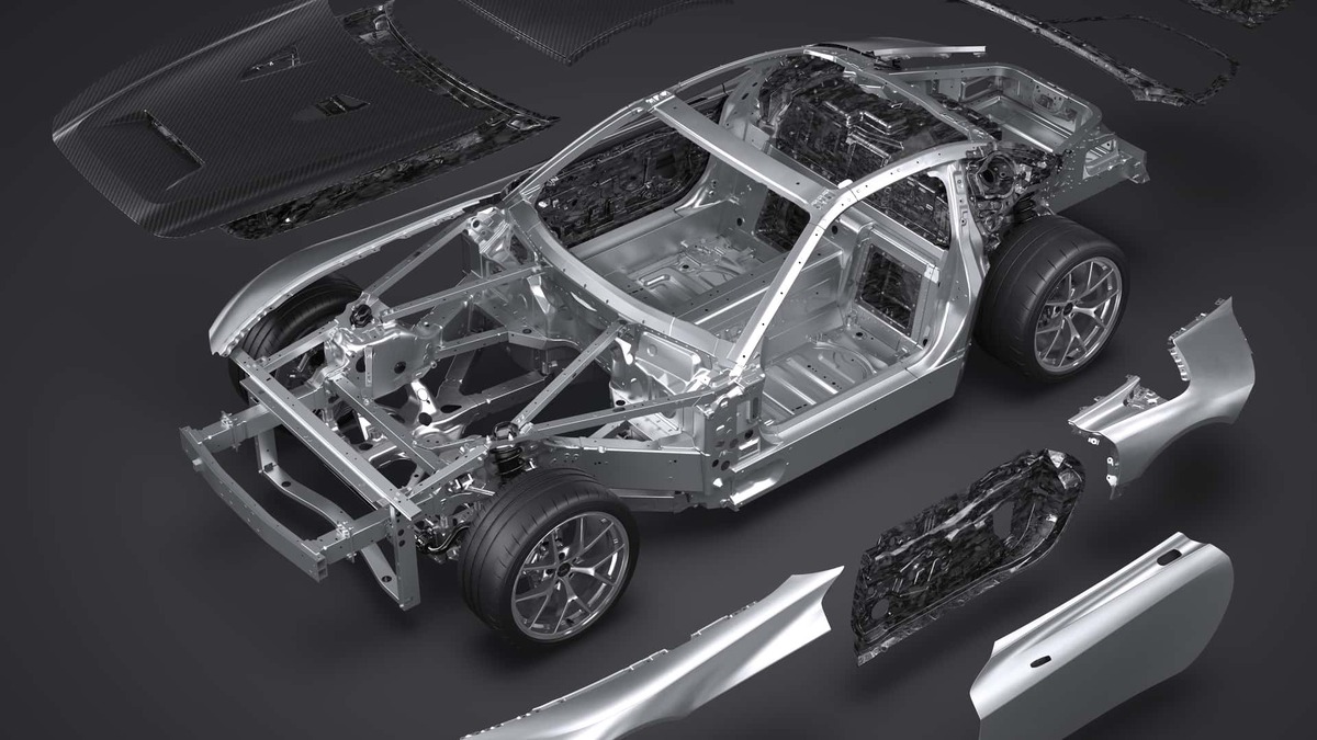 GR GT stojí na konstrukci, která je z většiny hliníková, ale s pár nečekanými volbami materiálů.