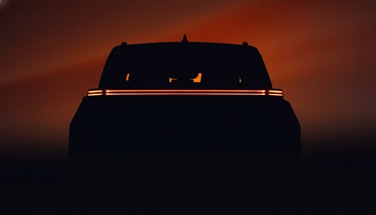 Zveřejněný obrázek ukazuje zadní část vozu v šeru, ale i tak je možné vyčíst několik nápadných prvků. Karoserie má blokovitý, krabicový obrys, blatníky působí široce a „nabušeně“ a je patrný výrazný přechod mezi linií bočních oken a zbytkem karoserie. Většina detailů je záměrně skrytá, zato zadní světla jsou rozsvícená: jednoduchý motiv přes celou šířku doplňují dvě tenké LED linky uvnitř obdélníkového „rámu“ světel.